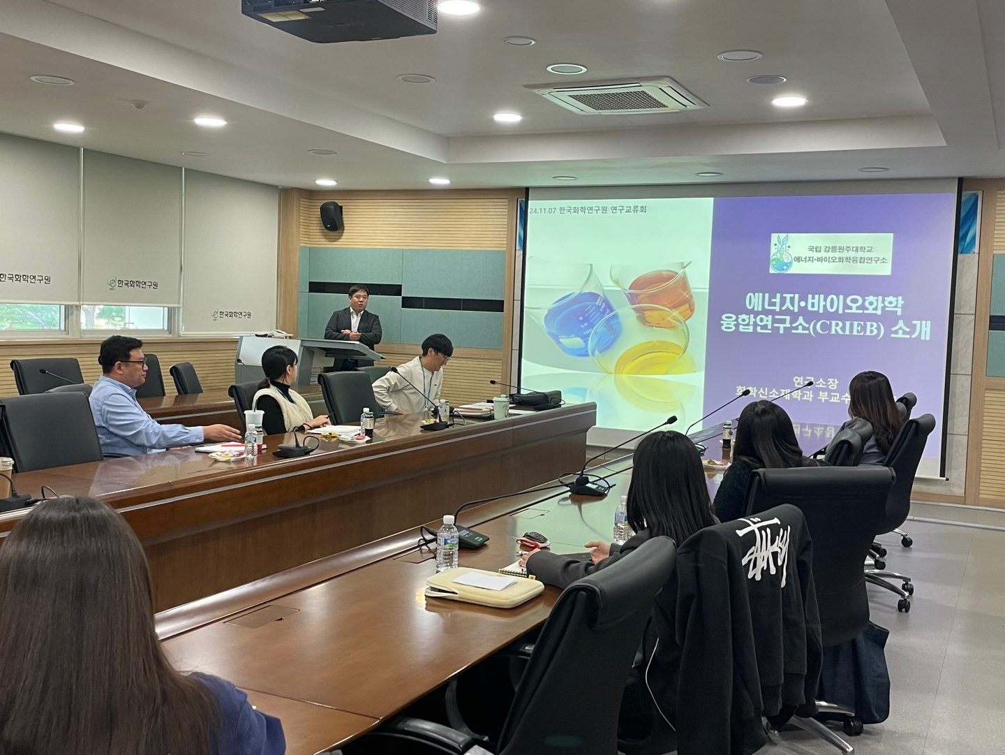 업무협약 체결식과 함께 개최된 연구 교류회에서는 에너지바이오화학융합연구소의 주요 연구 분야 중 목재 및 해조류 기반의 바이오매스나 이산화탄소를 활용한 친환경 바이오 에너지 개발, 폐플라스틱의 고부가치화를 통한 신소재 개발, 바이오매스를 활용한 식품 포장재, 어업 도구 등에 활용할 수 있는 바이오플라스틱 고분자 소재 개발 등의 주제를 중심으로 양 기관의 연구자들이 연구 내용을 발표하고, 향후 협력 사항을 활발히 논의하였다.
