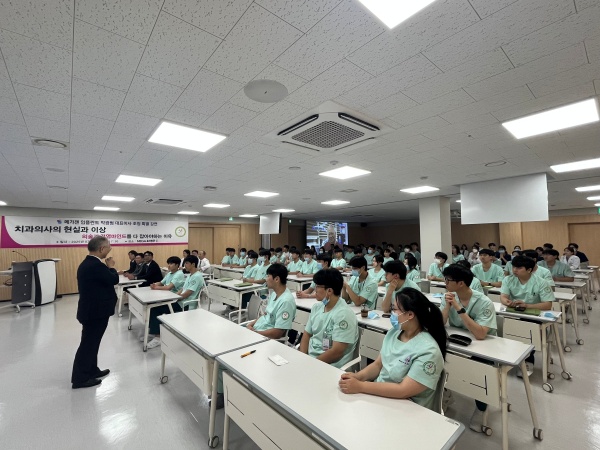 특강에서 박 대표이사는 예비치과의사인 치의학과 3, 4학년 학생들에게 현재에도 활발한 임플란트 진료와 기업경영을 병행하는 본인의 생생한 경험을 바탕으로, 환자와 진료지원 동료를 대하는 마음가짐부터 치과의사가 갖추어야 할 전문성의 중요성과 앞으로의 치과의사로서의 삶의 로드맵을 제시하는 강연으로 원내생들의 큰 공감을 얻었다.