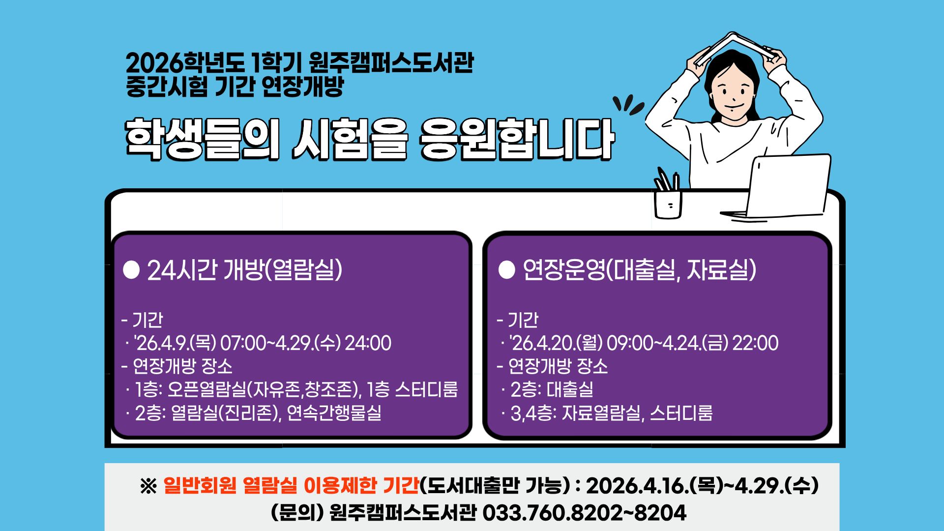 2026학년도 1학기 중간시험 기간 원주캠퍼스도서관 연장 개방 계획