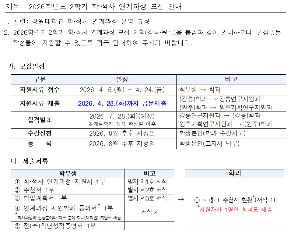 2026학년도 2학기 학·석사 연계과정 모집 안내