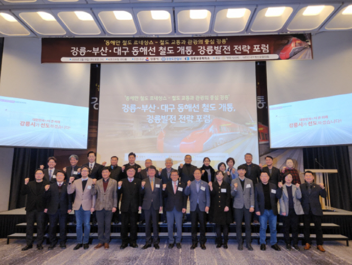 강릉시와 강원도민일보, 강릉상공회의소가 공동 주최/주관한 동해안 광역 철도망 시대-강릉 발전 전략포럼이 2025219일 강릉 씨마크 호텔에서 김홍규 강릉시장과 경민현 강원도민일보 사장, 나영진 강릉상공회의소 회장을 비롯 지역 기관, 단체장과 상공업, 관광업계 인사들이 대거 참석한 가운데 개최됐다.